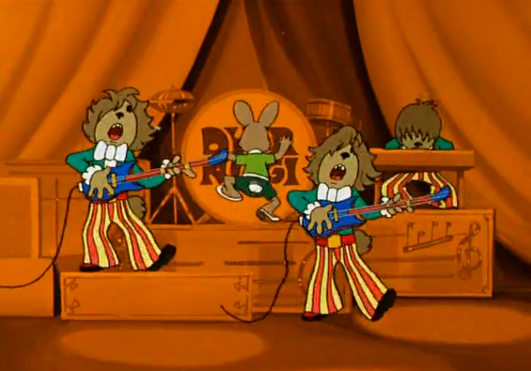 Напомню ляп, уже ставший классикой. "Ну, погоди!", 9 выпуск. Исполнение группой "Dvornjagi" хита "У попа была собака".