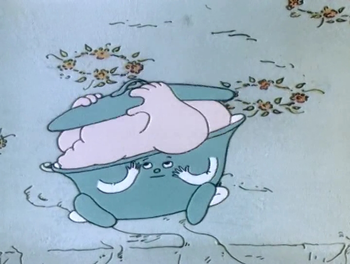 Но, может, конечно, искали другой мультфильм, т. к. тесто-мусс всё же в итоге упихивает себя в кастрюлю с первой попытки, хотя и свисает через край. )