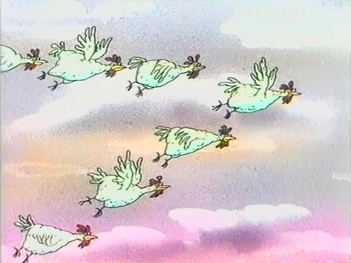 2. В центре повествования в этом мультфильме был вовсе не петух, а совсем другая птица, вынашивавшая наполеоновские планы. Кстати, логотип канала, попавший в кадр, уже может что-то подсказать.