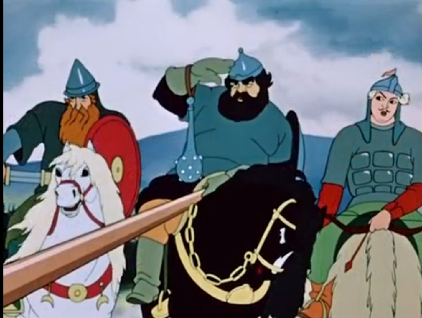 Так по копью понятно, что Илья Муромца, мульт скорее всего про Приключения Мурзилки, серия где пацан получил двойку по географии