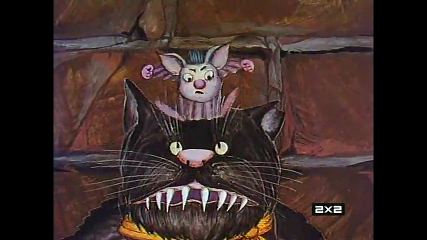 Чтоб тема не простаивала, вот кот, кадр практически полный. У кота, по фильму, вид птицеедский. Может, и мыше- тоже, но по фильму - такой. До заката СССР еще времени было достаточно...