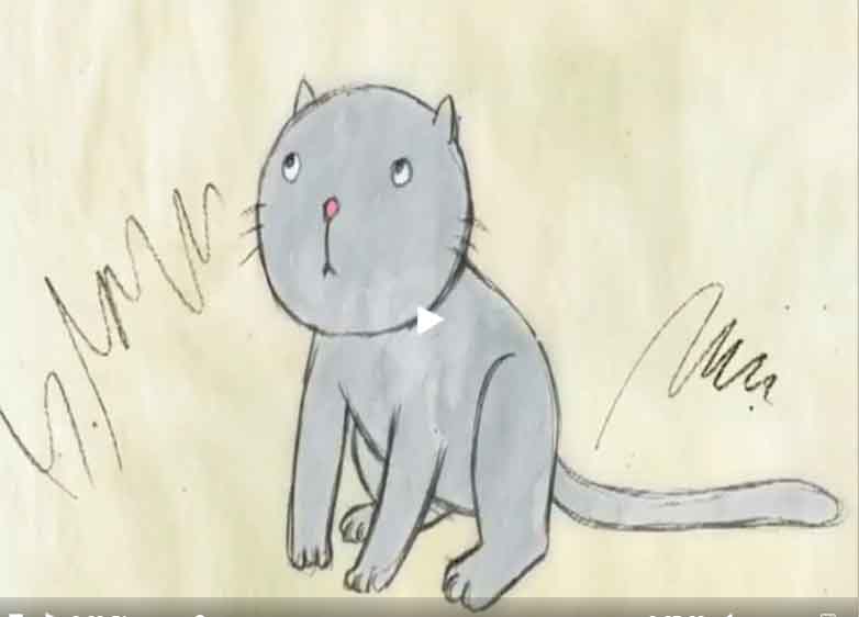 Первый раз я познакомился с его мультиком "Дерево". И собачка оттуда очень похожа на ту, крокодилообразную, из "Сониного побега". Не сдержусь, приведу обеих под впечатлением (хотя это и не коты)