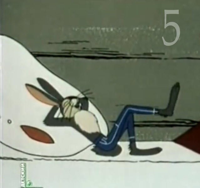 Почему-то у меня этот кадр ассоциируется с зайцем-симулянтом. Однако в мультике "Симулянт" совсем другой заяц... :|