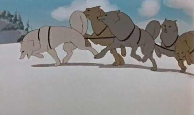 Первый — это из "Пингвинёнка Лоло", часть 1, а вот второго пса точно не встречал на мультпросторах. Совсем ни с чем не ассоциируется.