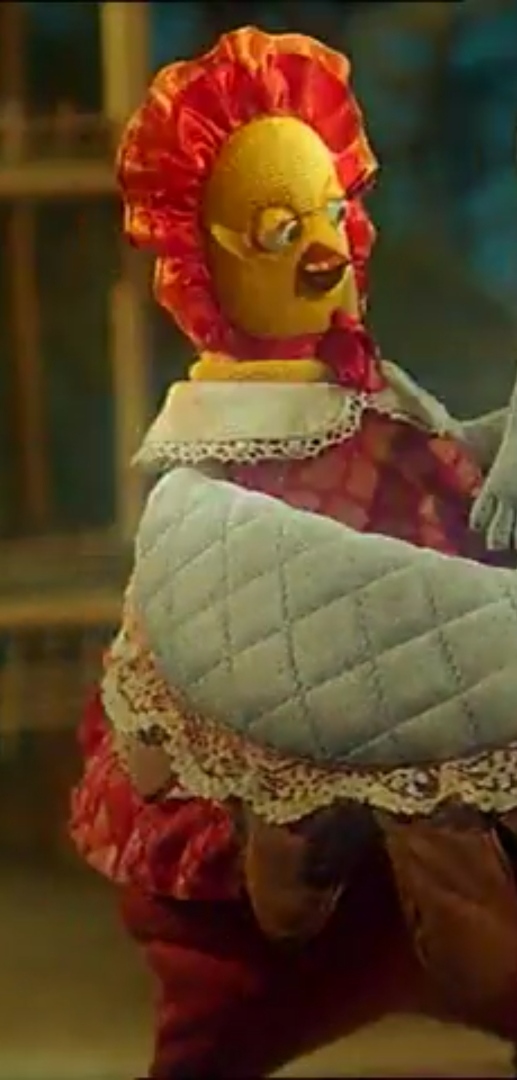А вот фильм совсем не старый, но сделан очень оригинально и озвучен качественно. Приятно удивил нас когда-то, детям полюбился. Кадр обрезал. Что же Курица держит в своих руках?