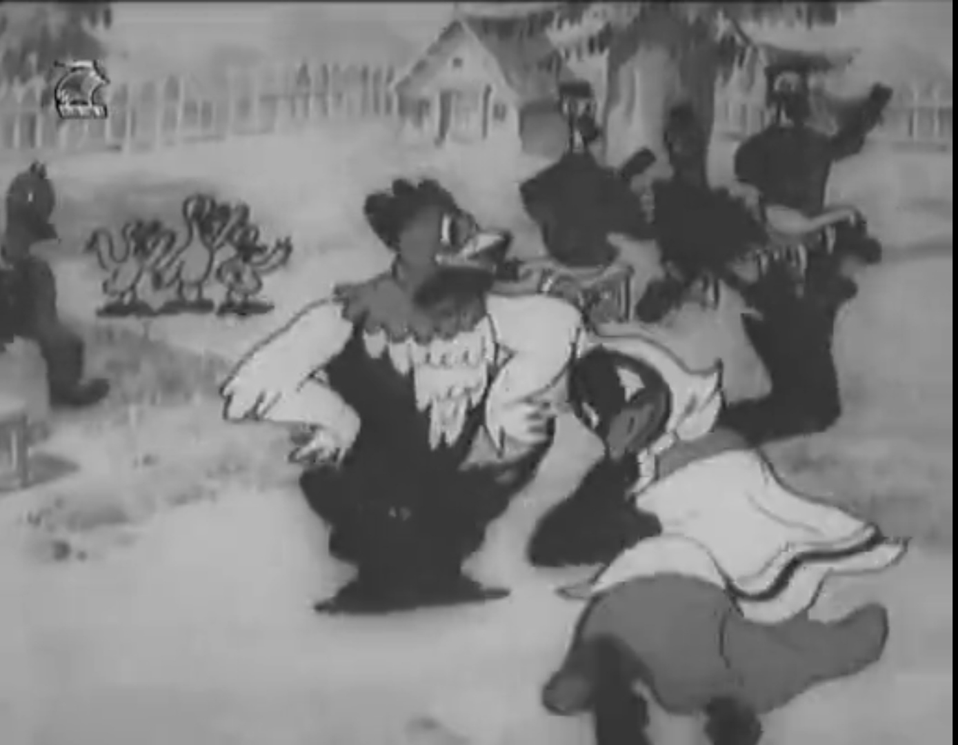 Чёрно-белый мультик не от Диснея ли? Уж очень похож, несмотря на балалайки и гармонь.
