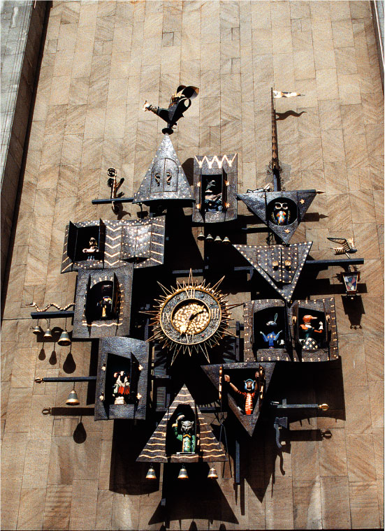 Там на тёмном фоне часы ,что на фото, камера обходила по кругу и открывались окошки со сказочными персонажами и в конце в нижнем, где на настоящих кот, камера как-бы заходила туда .Там каморка сказочника или волшебника и (точно не помню) показывали камин и вроде-бы раскрывалась книга и начиналась передача. После передачи всё в обратной последовательности.