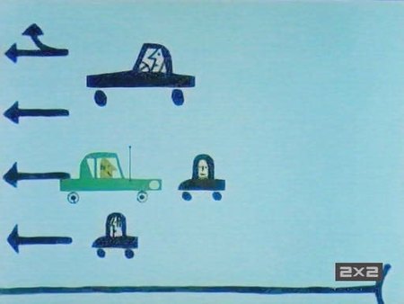 Владелец москвича торопится на футбол, нарушая правила дорожного движения. В финале водитель становится инвалидом, а искореженную машину хоронит процессия со знаками дорожного движения вместо венков.